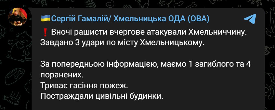 Також стало відомо, що вночі три удари було завдано по Хмельницькому. Про це повідомив губернатор області Гамалій.
