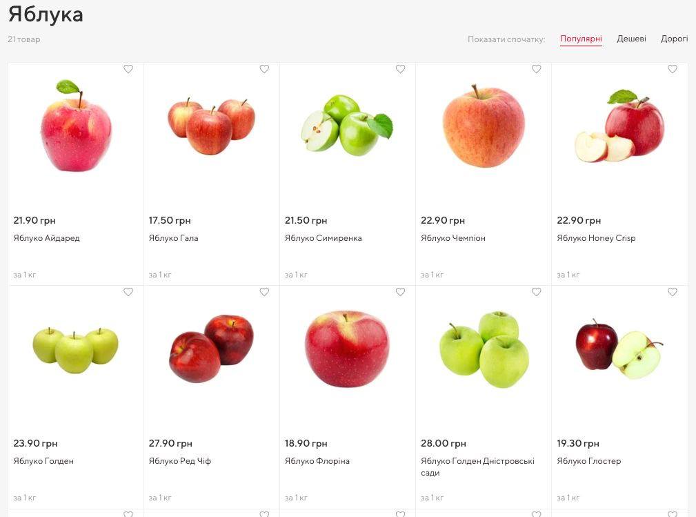 Наразі ціни за кіло яблук у столичних магазинах варіюються від 17 до 22 грн.