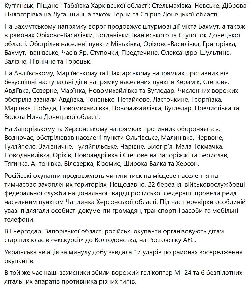 Докладніше про те, що відбувалося вчора, читайте у підсумках за 24 березня.
