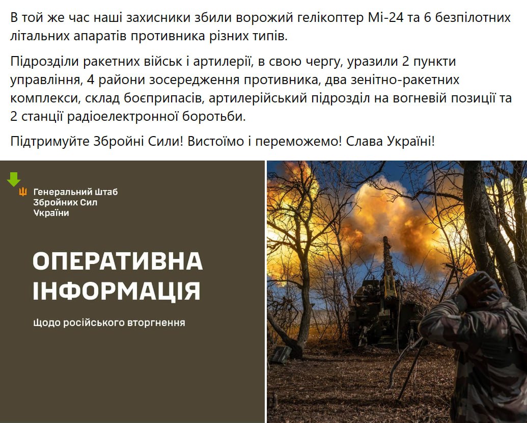 18:17 Вечірнє зведення Генштабу ЗСУ.