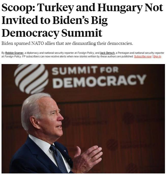 Видання зазначає, що цей жест, швидше за все, «ще більше розпалить напруженість між Вашингтоном і двома союзниками по НАТО». Водночас неназвані чиновники адміністрації Джо Байдена наполягають, що незапрошення Туреччини та Угорщини на саміт не означає оцінки Вашингтоном їхньої внутрішньополітичної ситуації.