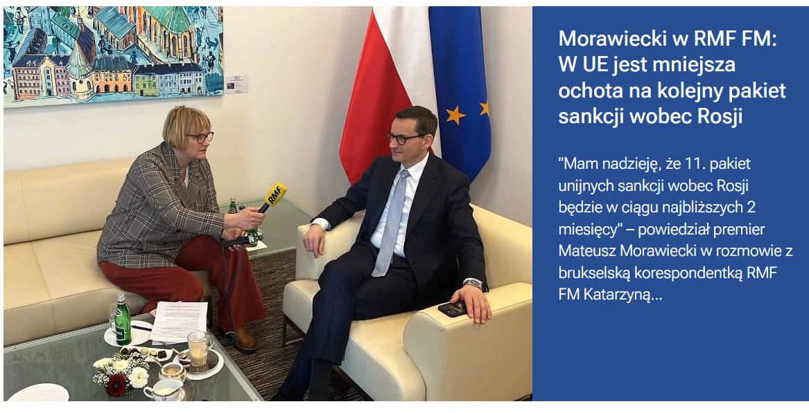 14:15 Прем'єр-міністр Польщі Матеуш Моравецький заявив, що у Євросоюзі вже спостерігається втома від санкцій. Проте в інтерв'ю RMF FM він висловив сподівання, що це не завадить ухваленню нового пакету антиросійських санкцій.