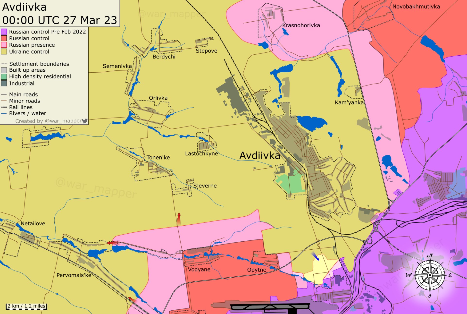 "Вони поки що намагаються зробити з Авдіївки Бахмут-2. Тобто вони теж там перейшли від тактики лобового штурму, переконавшись, що це безнадійно, до тактики охоплення міста з різних боків. І якщо Бахмут зараз десь на 4/5 у кільці, то Авдіївка поки що наполовину в кільці", - заявив він.