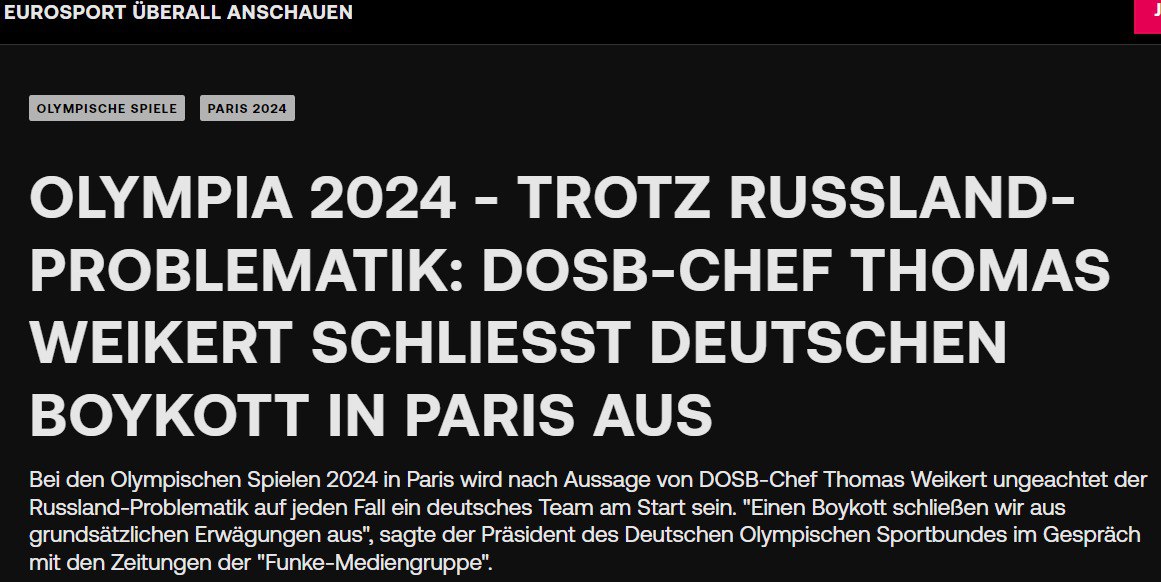 Олімпійська команда Німеччини обов'язково вийде на старт Олімпійських ігор 2024 року в Парижі, незалежно від проблем із Росією.