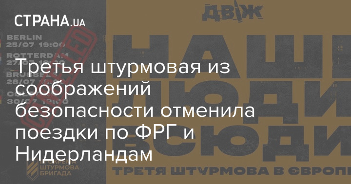 Третя штурмова бригада скасувала поїздки своїх ветеранів до ФРН та Нідерландів. Вони збиралися провести зустрічі з українцями - у Берліні, Роттердамі, Брюсселі та Кельні. Поїздку скасовано з міркувань безпеки.