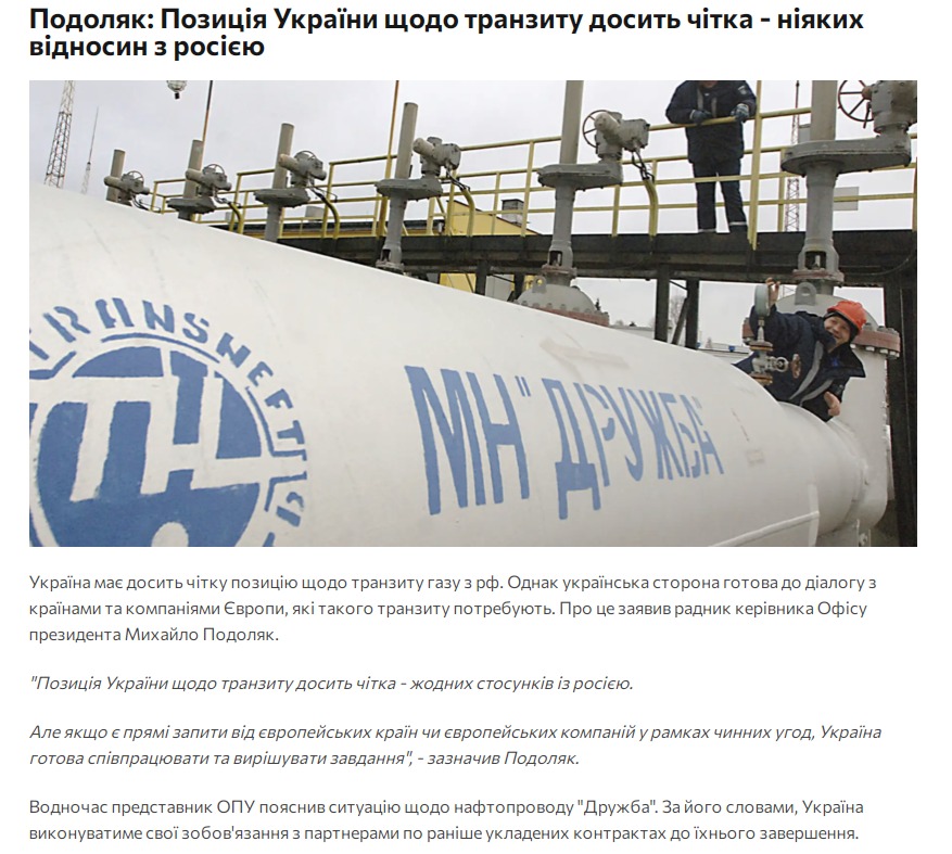 Очевидно, радник Єрмака переплутав дату закінчення контракту: у січні 2025 року закінчується контракт про транзит газу, а не нафти.