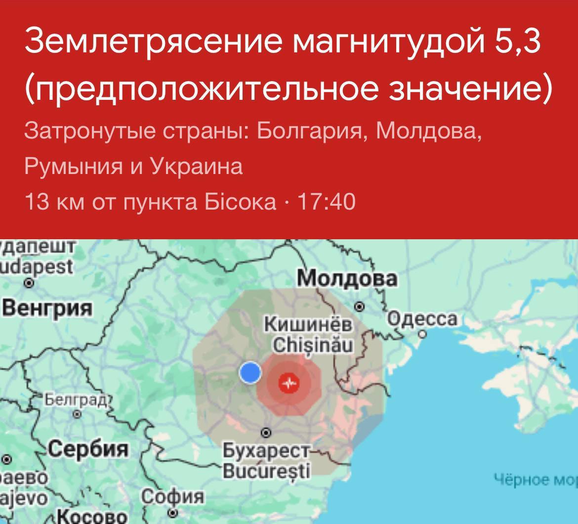 Google підтверджує землетрус із епіцентром у Румунії, який відчувався і в Україні.