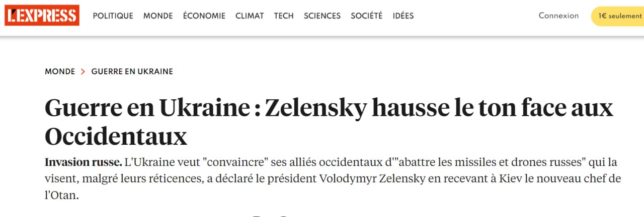 Видання зазначає, що український президент сьогодні наголосив на невдоволенні, яке він накопичував протягом кількох місяців проти Заходу, звинувативши його в "затягуванні" поставок ракет великої дальності для його країни.