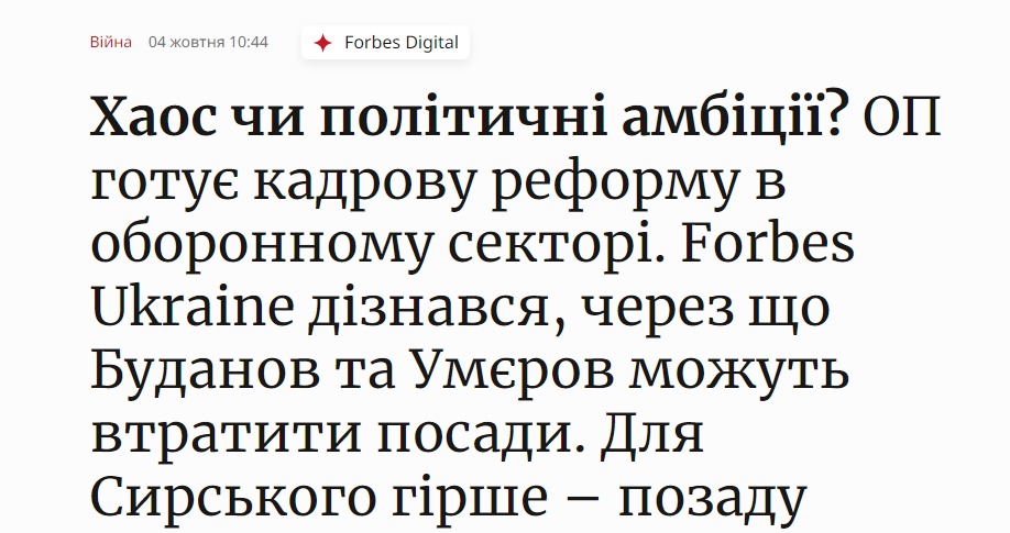 На Банковій обговорюють звільнення Буданова, Умерова та Сирського - Forbes