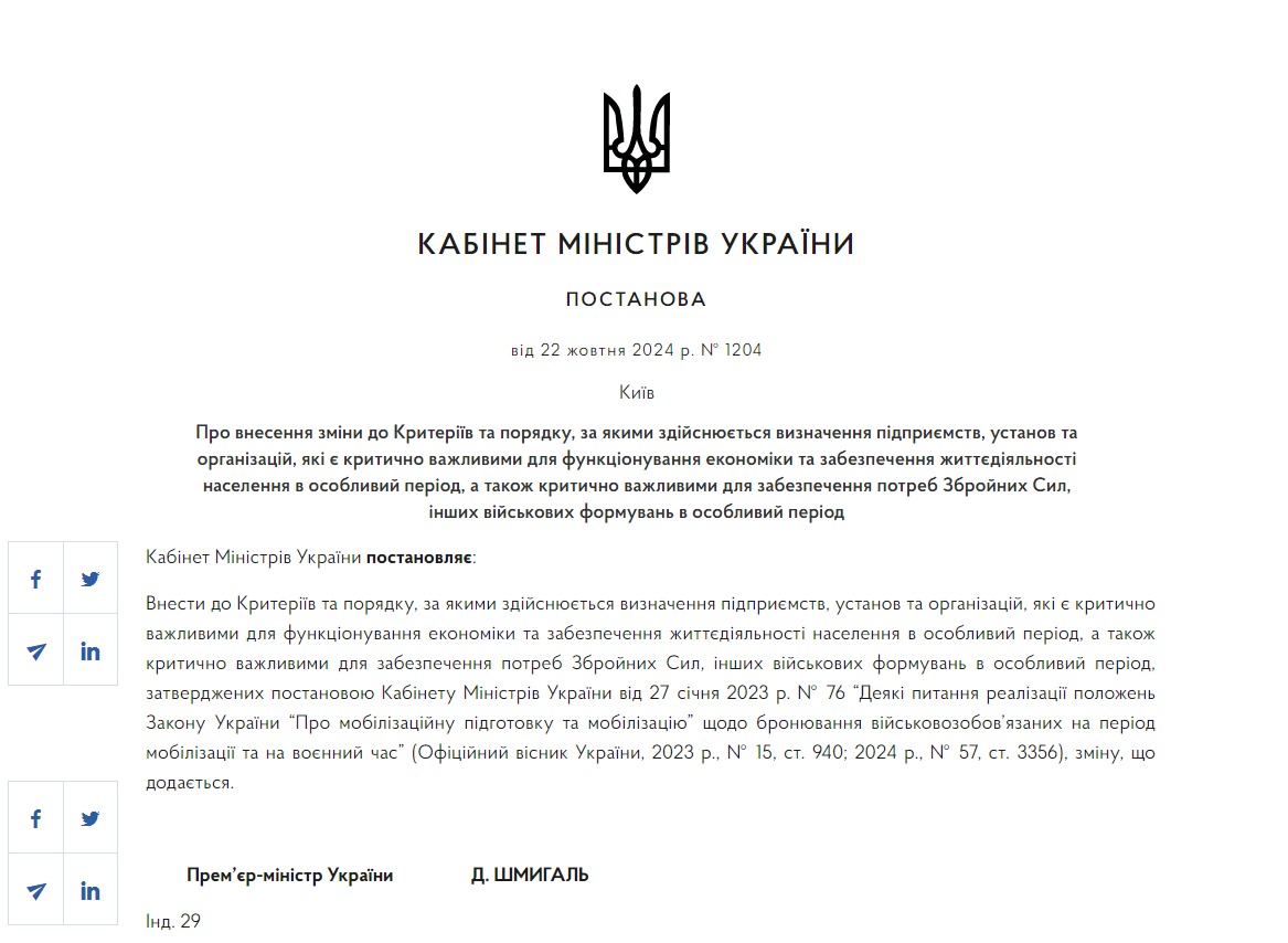 Підприємства, що одержали бронь від мобілізації, повторно перевірять на відповідність критеріям критичності