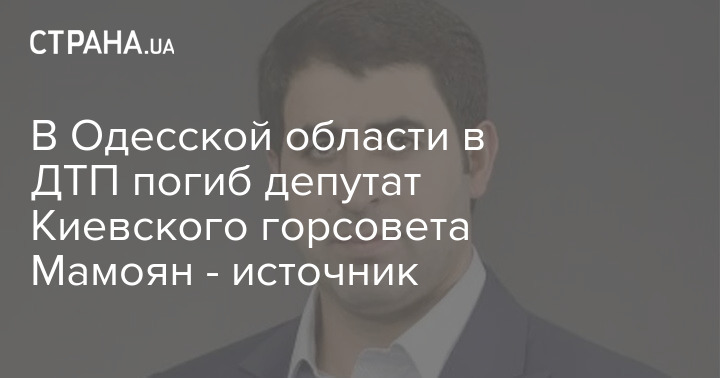 На Одещині сталася автомобільна аварія, в якій загинув депутат Київської міської ради Сергій Мамоян. ДТП було вчора.