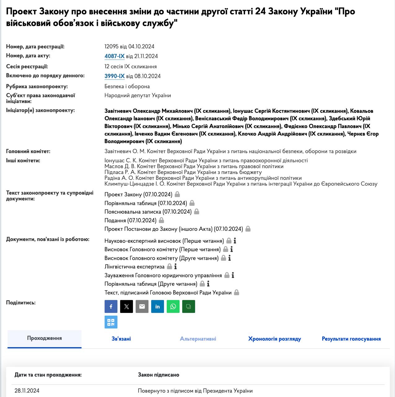 Згідно з карткою документа на сайті Верховної Ради, його було підписано вчора.