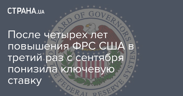 Після чотирьох років підвищення ФРС США втретє з вересня зменшила ключову ставку