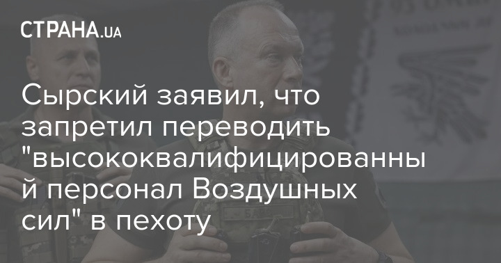 Головнокомандувач Збройних сил України Олександр Сирський заявив, що заборонив переводити "висококваліфікований персонал Повітряних сил" у піхоту.