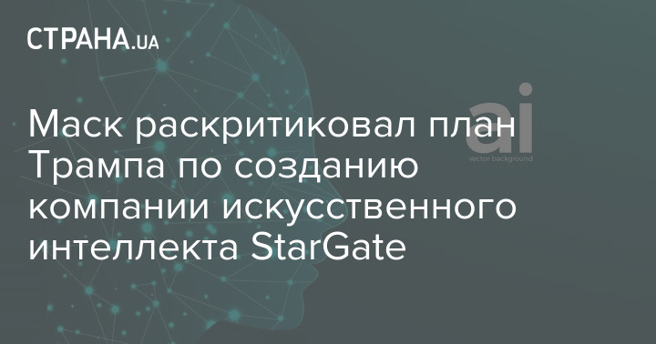 Ілон Маск розкритикував план Дональда Трампа щодо створення компанії StarGate для розвитку штучного інтелекту з інвестиціями у 500 мільярдів доларів.
