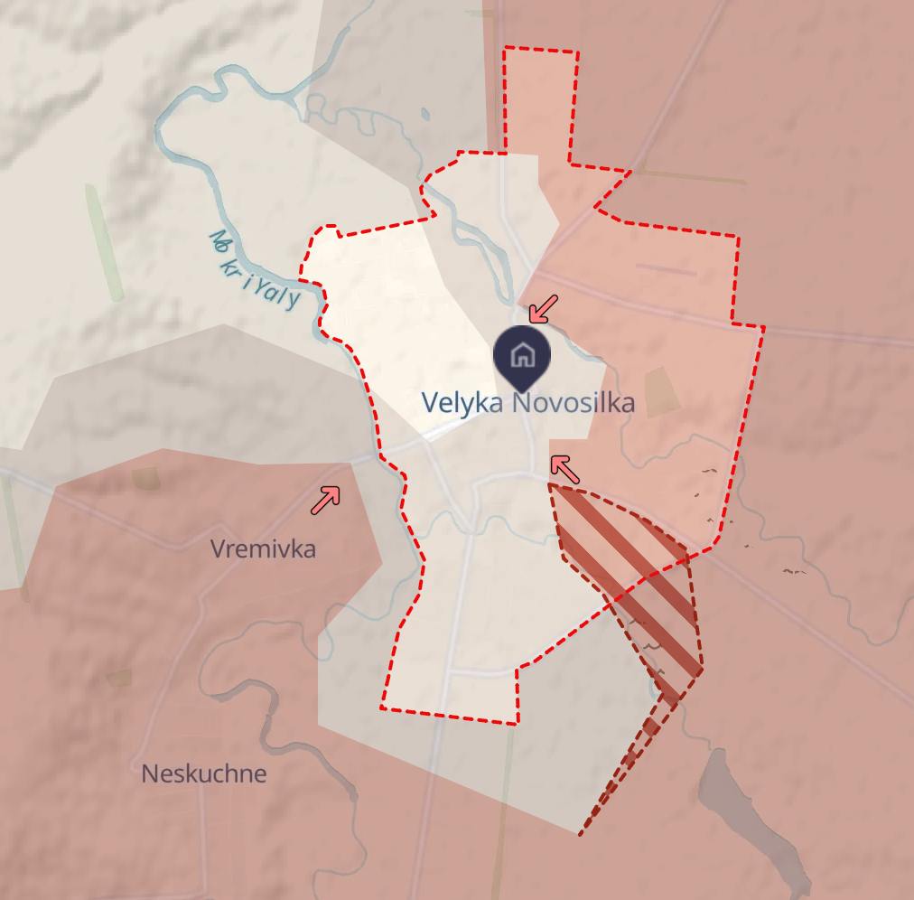 Велика Новосілка майже вся або у сірій зоні, або під контролем РФ.
