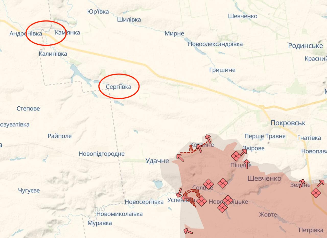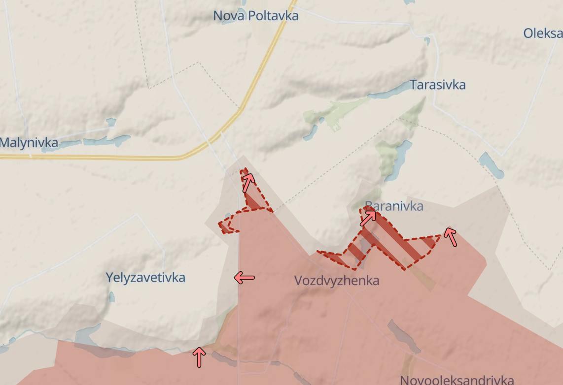 Крім того, росіяни в районі Воздвиженки та Баранівки (на схід від Мирнограда) майже перерізали трасу Покровськ-Костянтинівка – до неї залишилося менше кілометра.