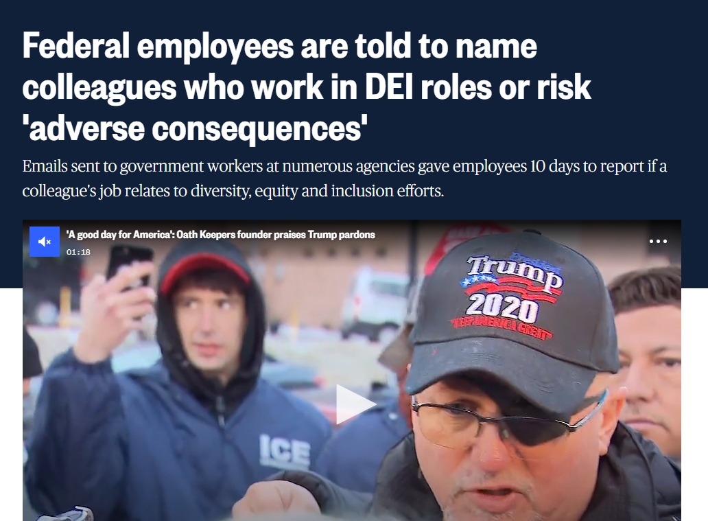 Федеральні службовці США отримали електронні листи з попередженням про те, що вони можуть зіткнутися з наслідками, якщо не повідомлять про колег, які працюють на посадах, пов'язаних із різноманітністю, рівністю, інклюзивністю та доступністю, які могли залишитися непоміченими державними інспекторами.