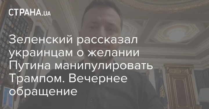 Зеленський розповів українцям про бажання Путіна маніпулювати Трампом. Вечірнє звернення
