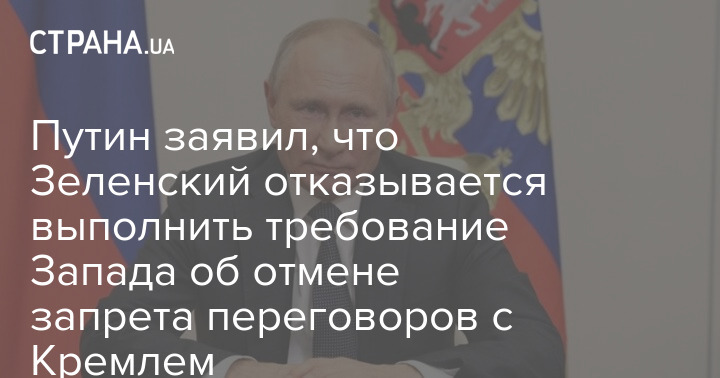 Російський лідер Володимир Путін заявляє, що Захід вимагає від президента України Володимира Зеленського скасувати указ про заборону переговорів з президентом РФ, але він це робити відмовляється.
