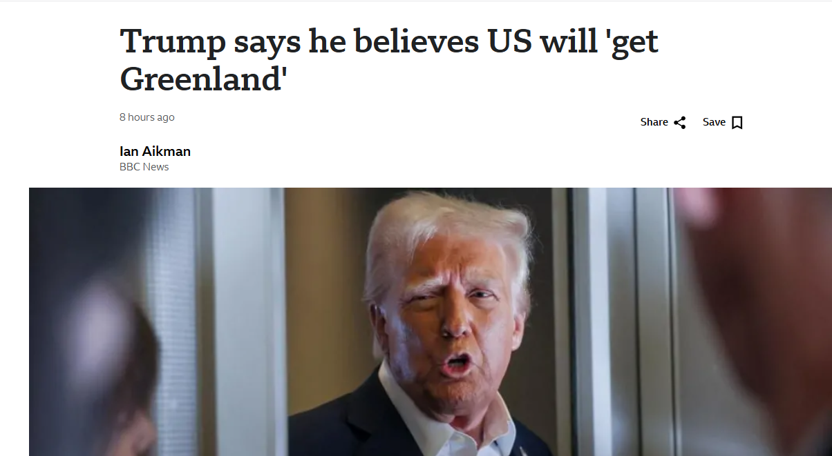 "Я не знаю, які претензії на Гренландію має Данія, але було б дуже недружнім актом, якби вона завадила спробі приєднання острова до США, тому що це потрібне для захисту вільного світу", - заявив Трамп.