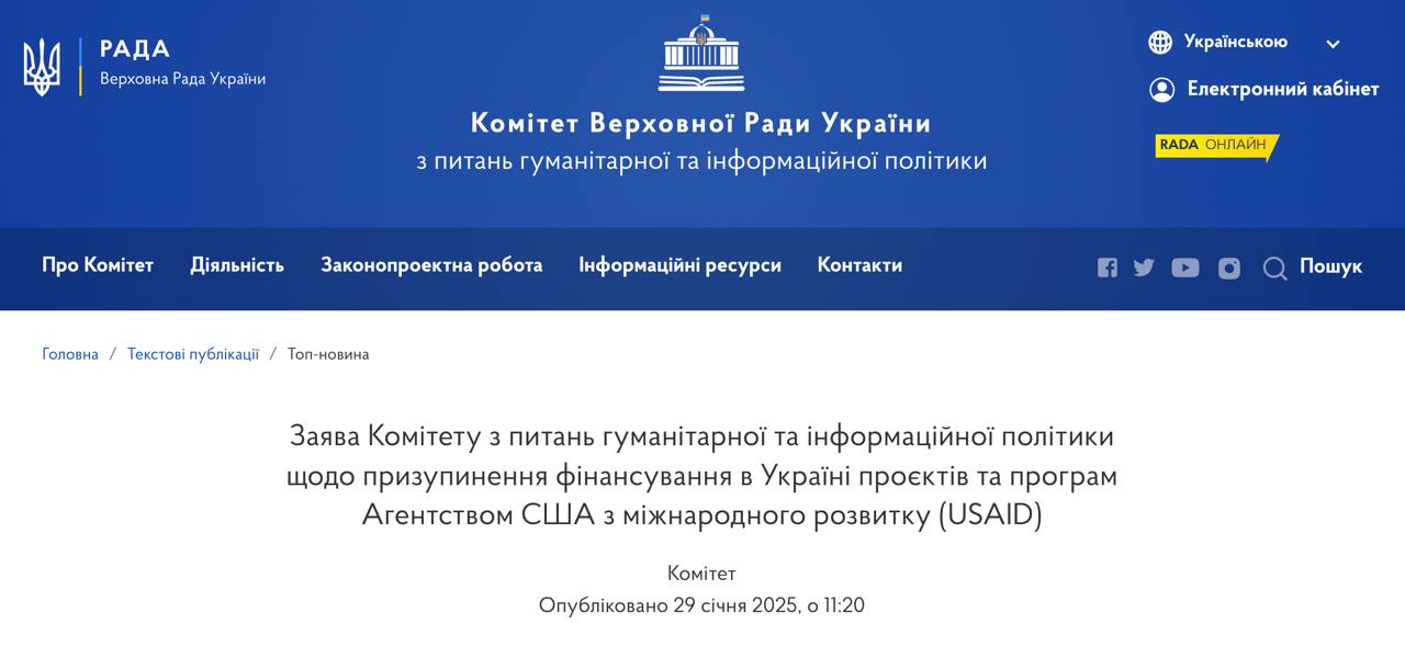 На сайті парламенту повідомляється, що почалися консультації з Євросоюзом про можливе заміщення американської допомоги за грантовими програмами USAID.
