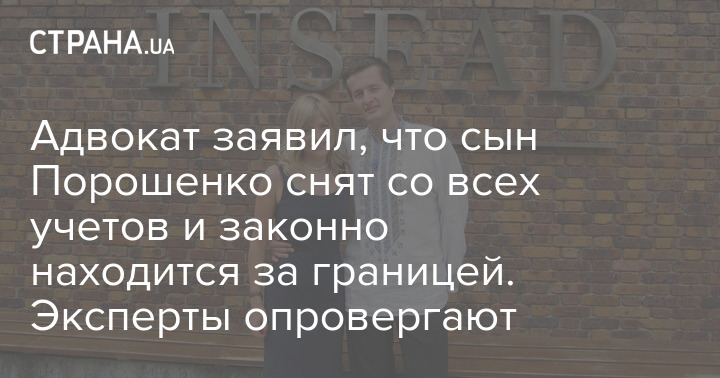 Адвокат заявив, що сина Порошенка знято з усіх обліків і законно перебуває за кордоном. Експерти спростовують