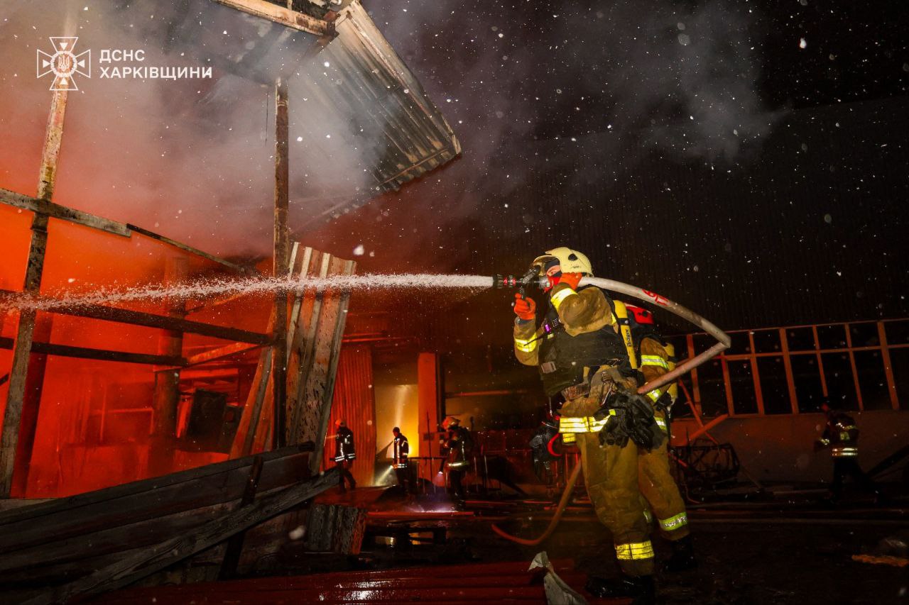 Ворог завдав удару БпЛА по території цивільного підприємства у Слобідському районі Харкова. Внаслідок обстрілу сталася масштабна пожежа площею 2000 кв. у виробничо-складській будівлі.