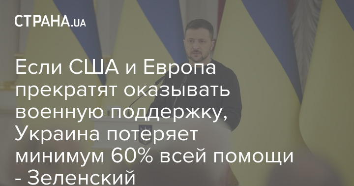 Якщо США та Європа припинять надавати військову підтримку, Україна втратить щонайменше 60% усієї допомоги - Зеленський