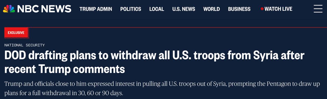 NBC нагадує, що ще у свій перший термін Трамп вивів більшу частину американських військ із Сирії, але потім повернув їх назад, і вони залишаються в країні досі. Останні роки там перебувало близько 900 військових, але у грудні їх контингент збільшили до 2000.