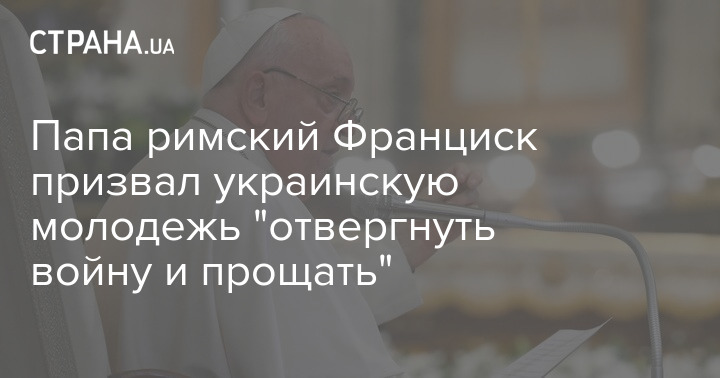 Папа римський Франциск закликав українську молодь "відкинути війну та прощати", вести діалог з РФ та "протистояти інстинкту відповідати на удар іншим ударом".
