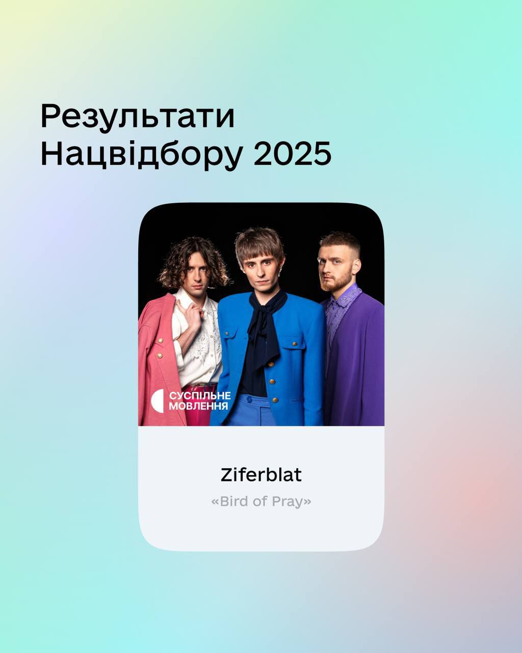 Група Ziferblat із піснею "Bird of Pray" представить Україну на "Євробаченні" у Швейцарії. Конкурс відбудеться у травні.