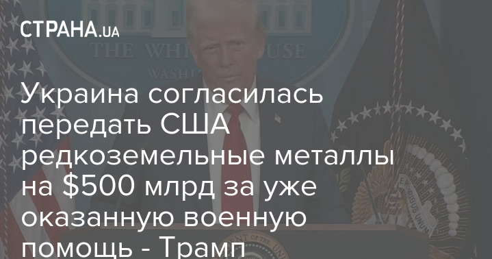 Україна погодилася передати США рідкісноземельних металів на $500 млрд за вже надану військову допомогу - Трамп