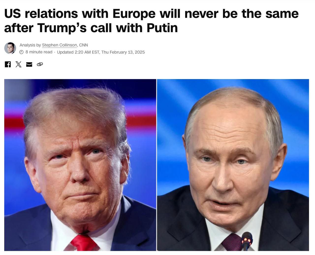 CNN з посиланням на європейських співрозмовників пише, що далі на Україну може чекати рішення на зразок поділу Німеччини після Другої світової війни. Коли "західної частини буде дозволено приєднатися до Європейського Союзу як старої Західної Німеччини", але вже без прикриття у формі американських військ і без прийому до НАТО.