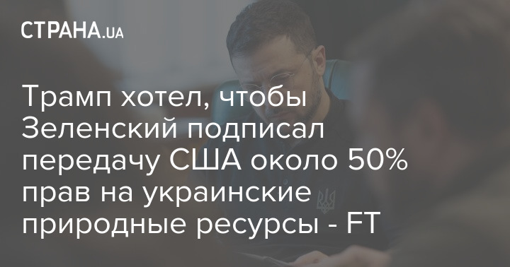 Трамп хотів, щоб Зеленський підписав передачу США близько 50% прав на українські природні ресурси - Financial Times