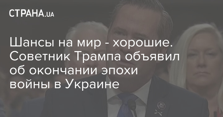 Шанси на світ – добрі. Радник Трампа оголосив про закінчення епохи війни в Україні
