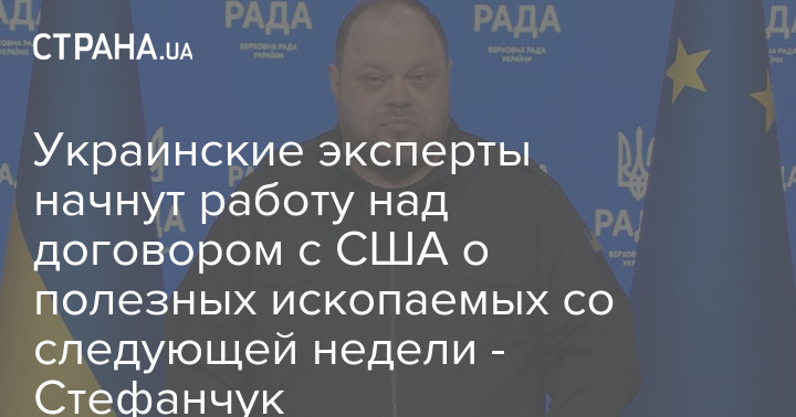 Українські експерти розпочнуть роботу над договором зі США про корисні копалини з наступного тижня - Стефанчук