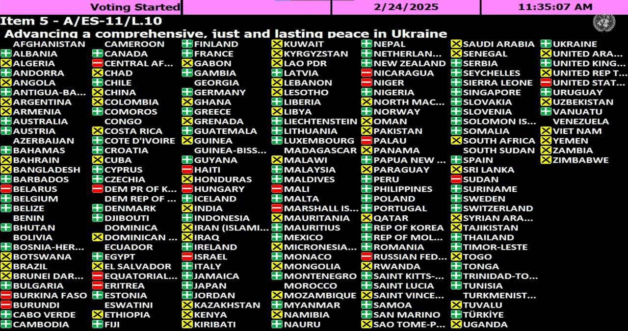 Усього "за" проголосували 93 країни, проти – 18, утрималися – 65.