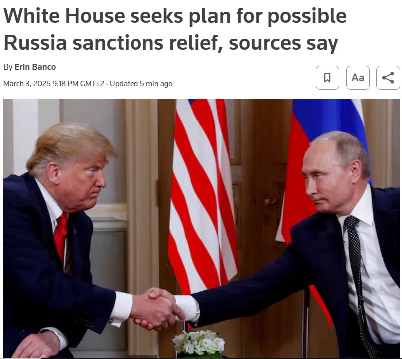 За даними джерел, наразі санкційні відомства готують пропозицію щодо зняття санкцій з окремих юридичних та фізичних осіб, включаючи деяких російських олігархів.
