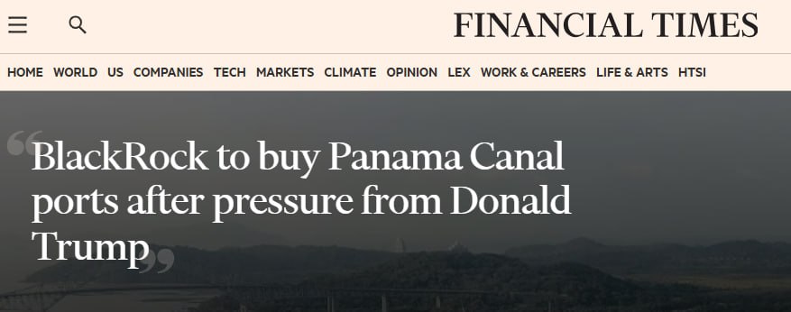 Видання пише, що американська інвестиційна компанія BlackRock домовилася про придбання двох великих портів Панамського каналу у їхнього нинішнього власника з Гонконгу. Угода була укладена після того, як президент США Дональд Трамп неодноразово висловлював стурбованість передбачуваним китайським впливом на канал і навіть обіцяв відібрати його силою.