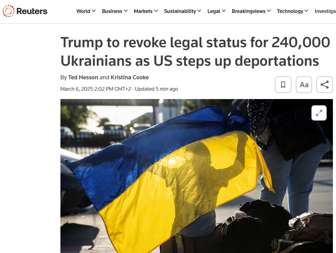 Це частина ширших зусиль адміністрації Трампа щодо позбавлення законного статусу понад 1,8 мільйона мігрантів із різних країн і не пов'язана з конфліктом із президентом Володимиром Зеленським, зазначає видання.