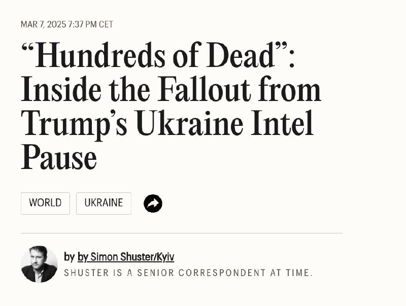 Зазначається, що зупинка супутникових даних від США допомогла Росії просунутися в Курській області, поставивши українське угруповання на межу оточення. При цьому поступ "загинули сотні українських солдатів", заявили журналу чиновники з Києва.
