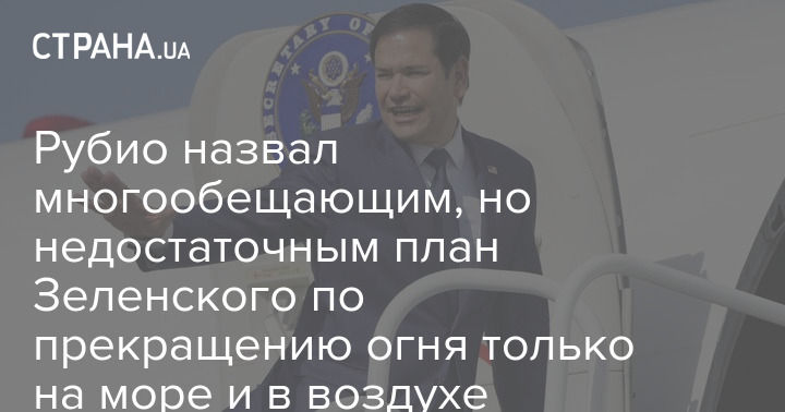 Державний секретар США Марко Рубіо назвав "багатообіцяючим", але "недостатнім" план Зеленського щодо припинення бойових дій на морі та в повітрі, повідомляє ВВС News.