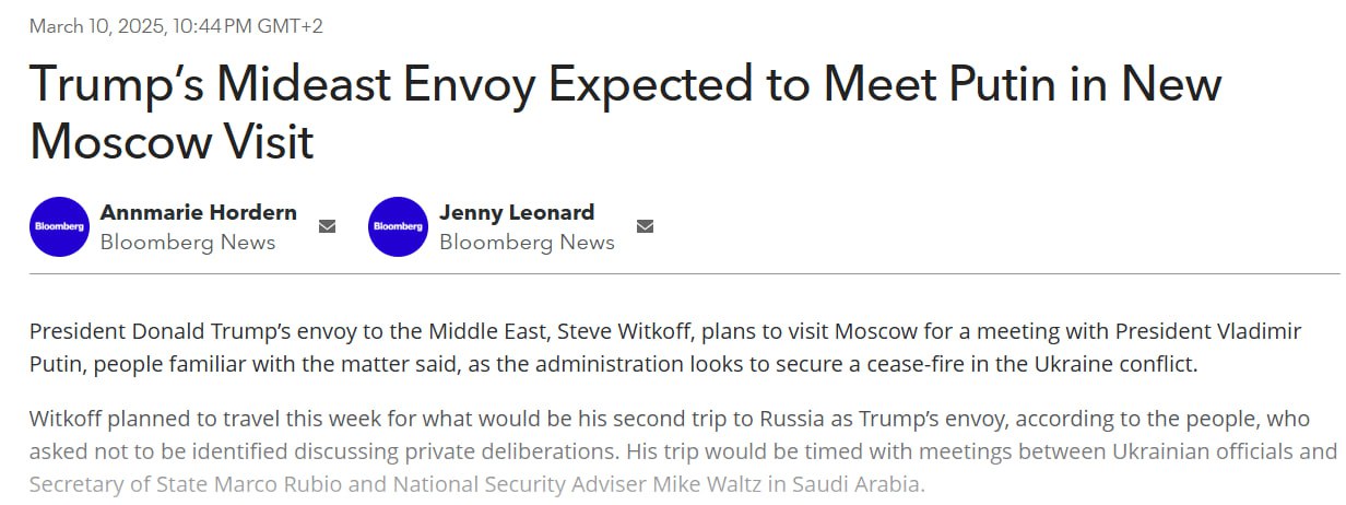 Нагадаємо, що Віткофф вже зустрічався з Путіним у Москві у лютому, коли обговорював обмін ув'язненими.