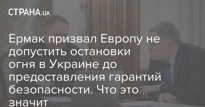 Керівник Офісу президента Андрій Єрмак вважає, що Європа не повинна допустити повної зупинки вогню в Україні доти, доки їй не нададуть гарантії безпеки.