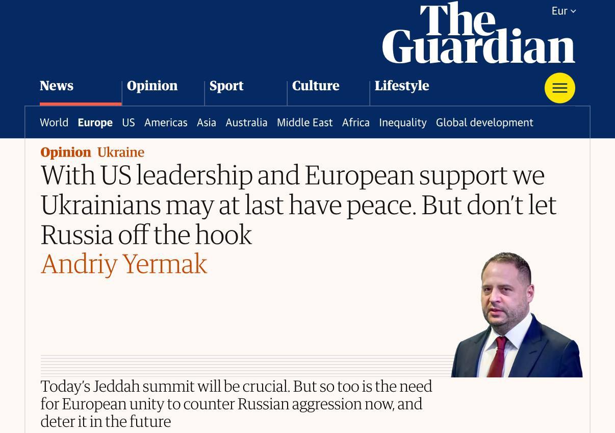 Про це Єрмак написав у колонці для британської газети The Guardian.