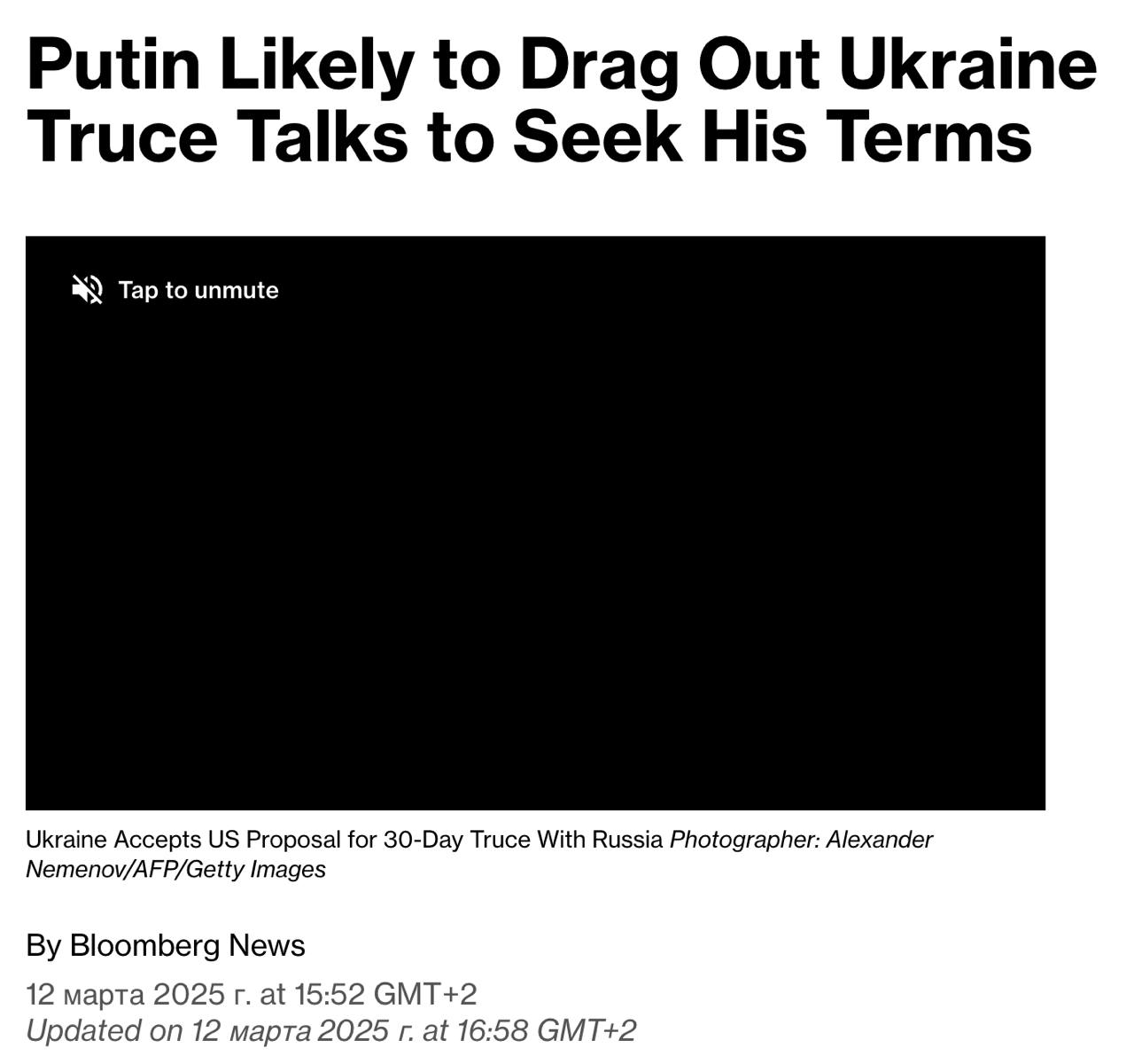 Імовірно, близькою до 100%, Україна відкине будь-які додаткові умови, які висуне Путін. Володимир Зеленський і раніше не хотів йти на припинення вогню та погодився лише під тиском американців. Тому, якщо Кремль висуне Україні нові умови, Київ використовує це як привід для виходу з переговорів. Можливо, виняток становитиме скасування указу про заборону переговорів з Путіним, хоча цілком імовірно, що навіть цього він не зробить.