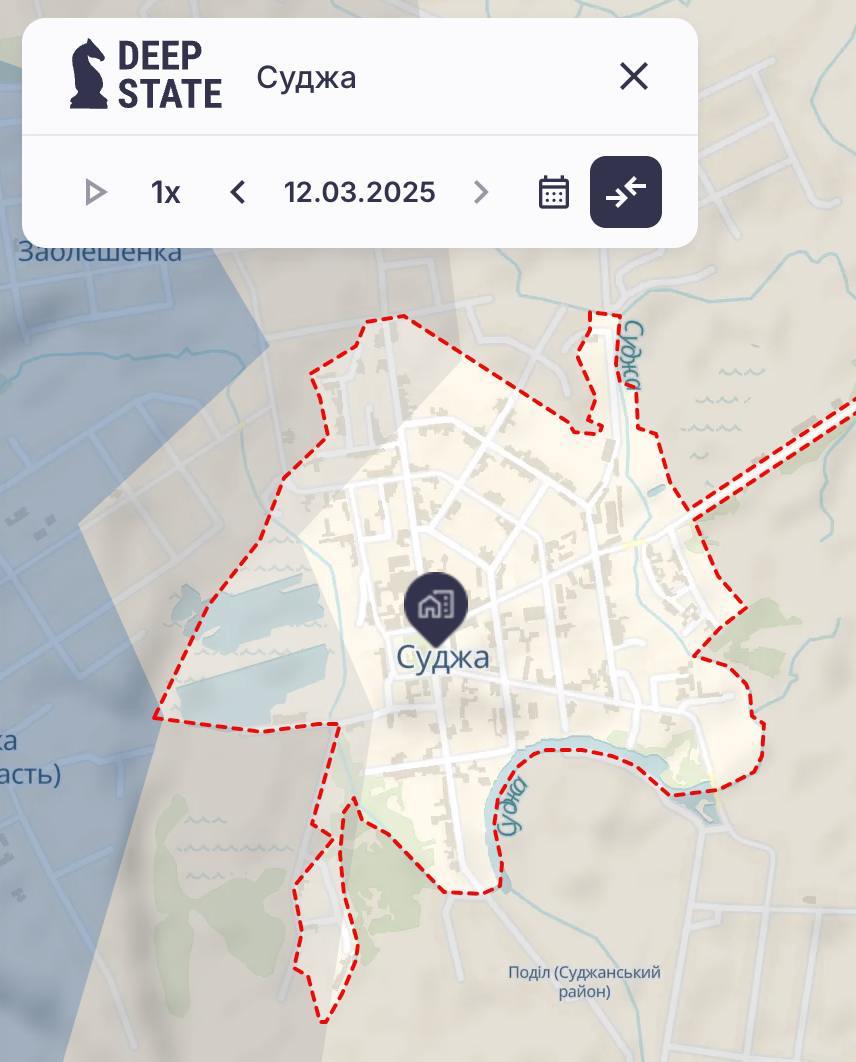 Водночас карта українського військового пабліку Deep State за вчорашній день показує лише сіру зону на околицях Суджі, що означає, що жодна зі сторін там поки що не закріпилася. А решта вказана під контролем РФ.