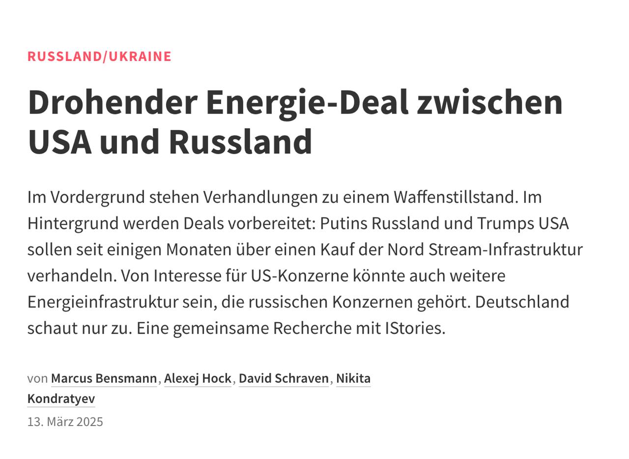 США обговорюють з РФ та Німеччиною купівлю "Північних потоків" та іншої енергетичної інфраструктури для перезапуску постачання російських енергоносіїв до Європи після завершення війни в Україні.