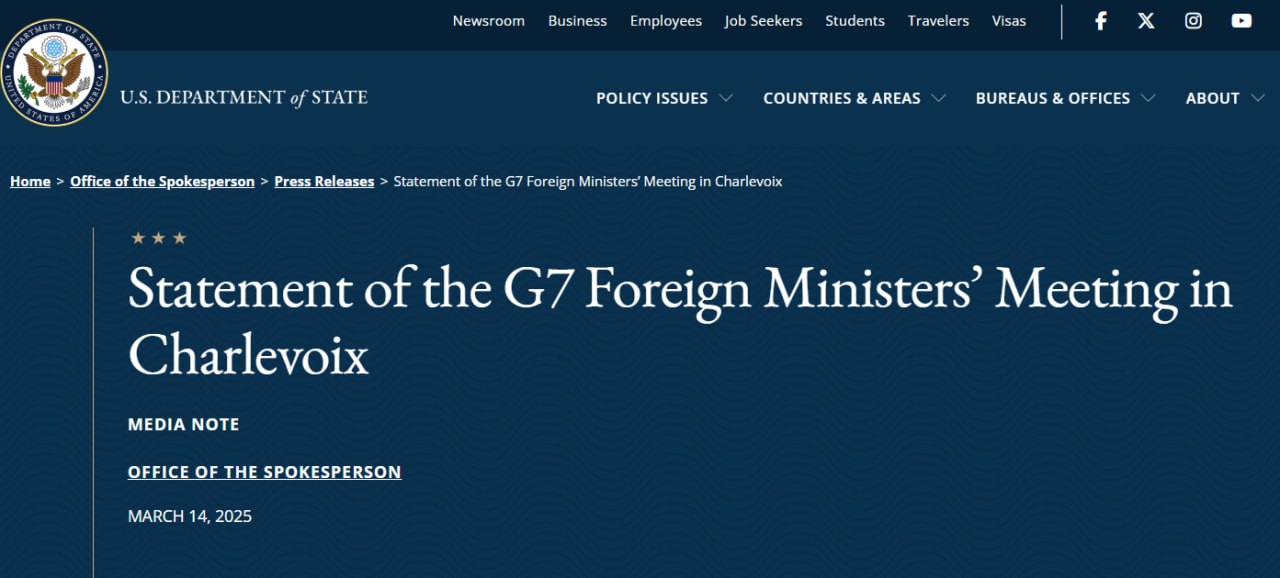 Про це йдеться у спільній заяві глав МЗС групи, опублікованій Держдепартаментом США.